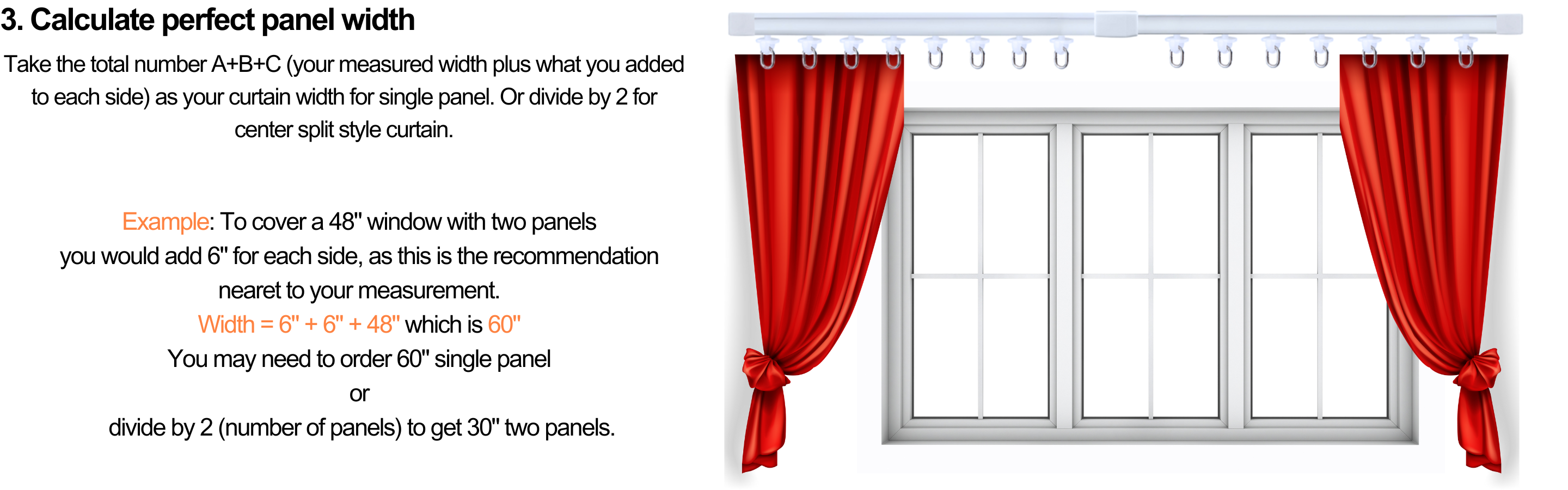Curtain Fullness: It’s important to note that your custom crutains/drapes will be made at 200% fullness, which refers to the extra fabric that goes into the drape. For example, if you order a width of 24”, your drapes will be made with at least 48” of fabric and pleated down to get a 24” width. This gives the drapery a textured look and keeps it from looking flat when closed